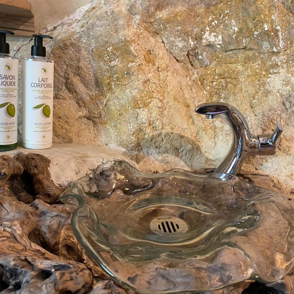 Incrustées dans la roche, la chambre et la douche de cette chambre invitent au romantisme. Le salon, situé dans la verrière, vous permet de profiter d’une douce lumière à l’abri des regards. Tout y est pensé pour un séjour inoubliable.